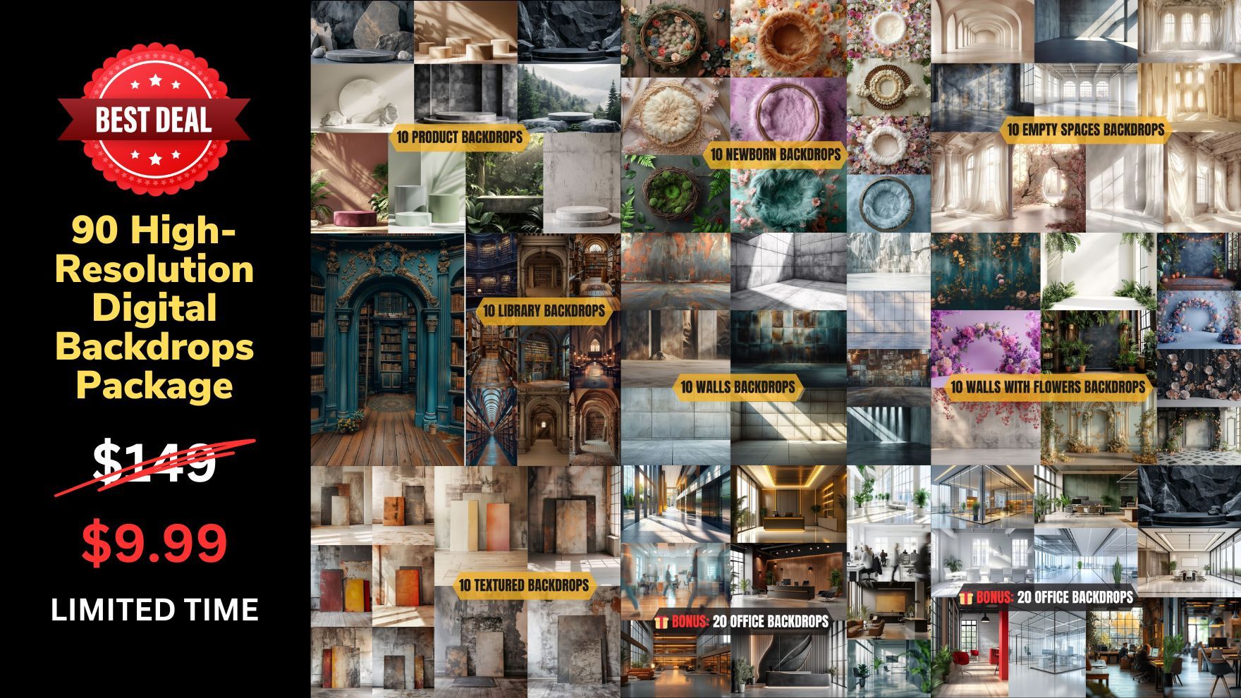 TOTAL 90 Different Digital Backdrops